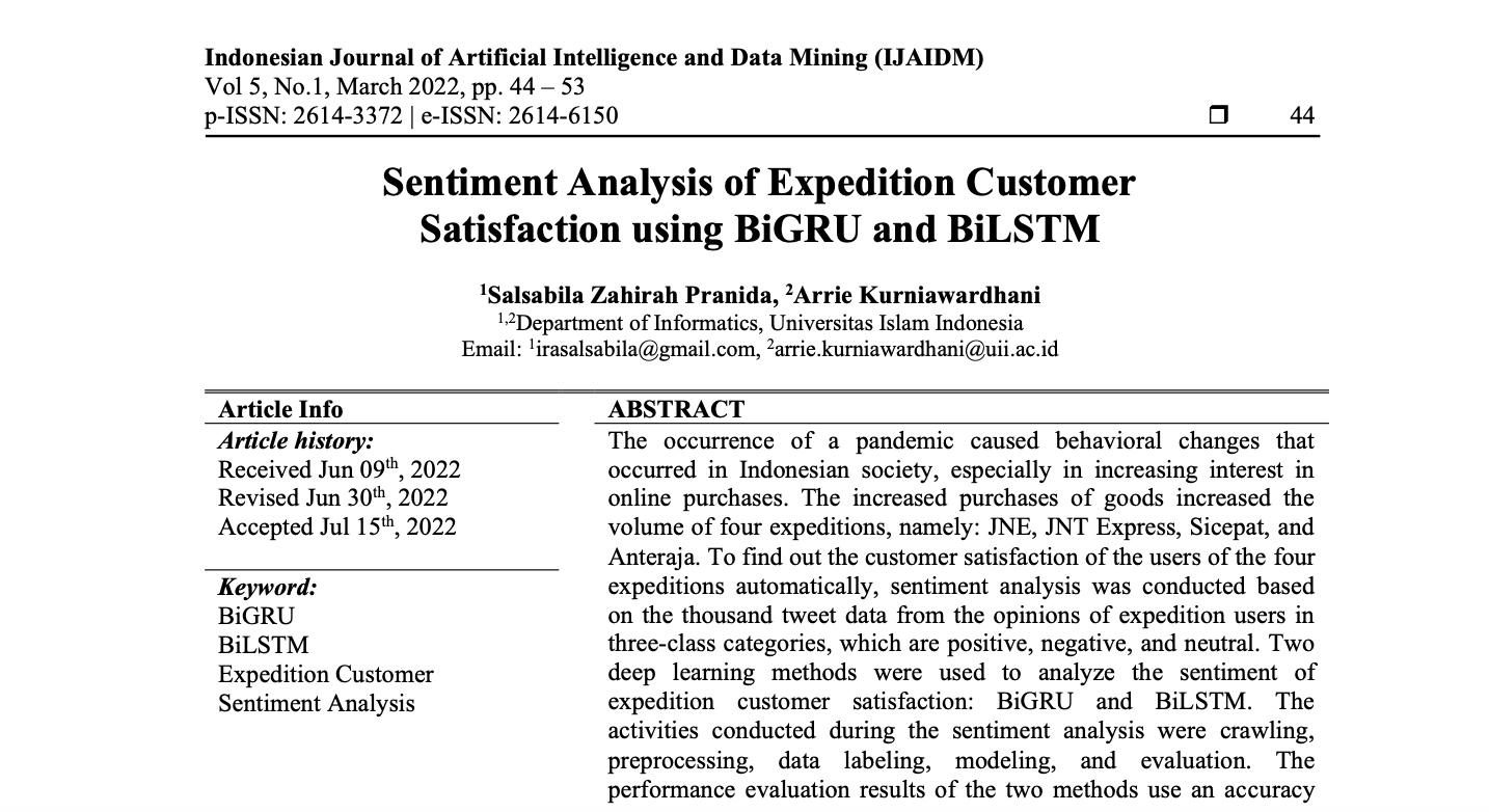 Indonesian Journal of Artificial Intelligence and Data Mining, 2022